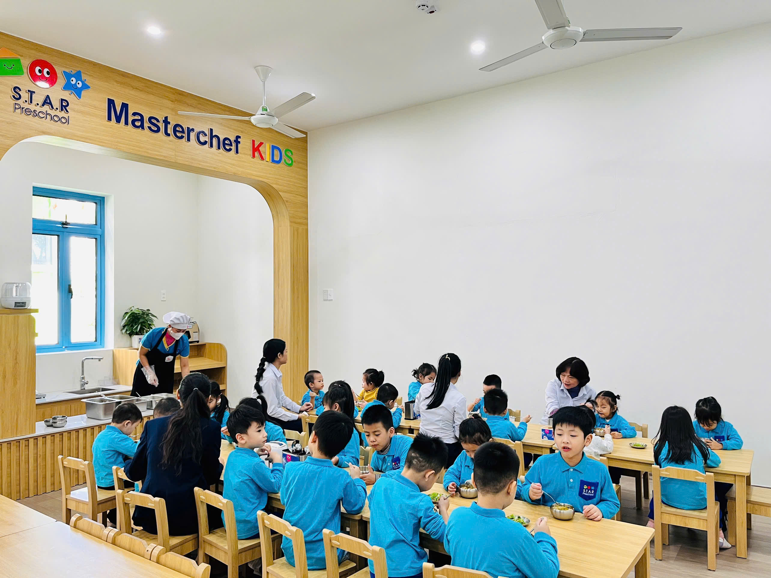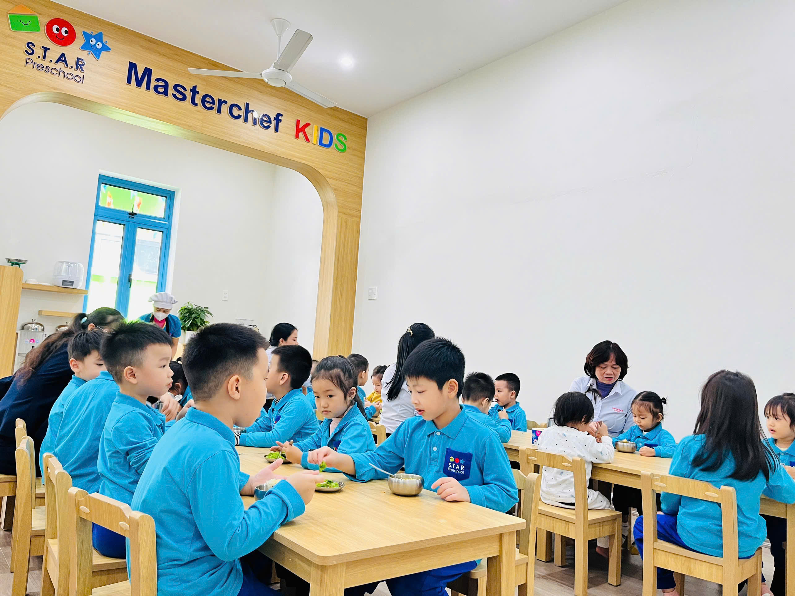 Tất cả các món ăn trong các bữa chính, bữa phụ do Đầu bếp của trường chế biến, không sử dụng các món ăn được chế biến sẵn, không sử dụng chất bảo quản.
